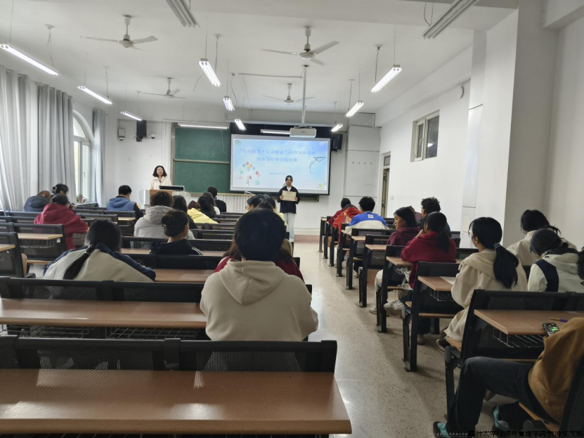 为响应世界精神卫生日的号召,提高大学生对心理健康问题的认识与重视,经济与管理学院于2024年11月6日在高台校区新文科楼103教室成功举办了以“心向阳光·心灵解谜”为主题的心理知识竞赛初赛。本次活动旨在通过知识竞赛的形式,增强大一新生对心理健康重要性的认识,促进学生之间的交流与合作,共同营造一个健康、积极向上的校园文化氛围。