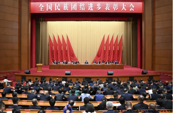 全国民族团结进步表彰大会会场(右一为王冬青)
