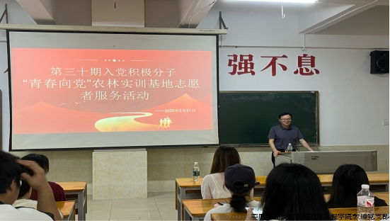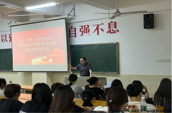 2025年5月21日,农林工程学院第三十期入党积极分子“青春向党”农林实训基地志愿者服务活动在主教楼110正式启动。该活动以志愿服务为平台,将党性教育与劳动实践教育相结合,旨在深化党性教育,改善实训基地环境,推广志愿服务精神,并全面培养积极分子的奉献精神、吃苦耐劳与团队合作能力。活动由农林工程学院副院长谢大识负责主持。