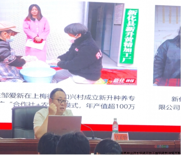 本次讲座立足涉农专业建设特色,以学促行,推动党建与专业的深度融合,为乡村振兴培育知农爱农人才,夯实基层治理理论根基。吴科长从重要意义、核心内容、实践要求三方面解读了《条例》。吴科长强调《条例》是党全面领导乡村治理、护航乡村振兴的“制度灯塔”,为农村基层组织建设工作指明方向。在结合多年实践工作经验中,吴科长从经济发展、文明建设、基层治理三方维度,系统解读了农村基层党组织的核心作用。同时,他也肯定了通过村干部定向培养、治理模式创新等实践方式,在激活产业发展动能,厚植文明乡风土壤,破解基层治理难题的重要作用。他通过例举一系列娄底各县市区乡村振兴方面生动鲜活的案例,使专业理论“沾泥土”“带露珠”,更加贴近工作实际。