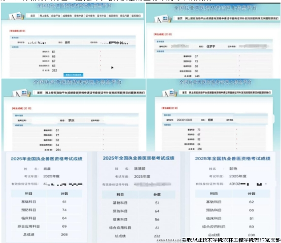 10月10日,2025年执业兽医资格证考试成绩揭晓,娄底职业技术学院农林工程学院喜讯频传:来自23级畜牧1班的姜辉,23级动医1班的罗庆、彭艳,23级动医2班的伍梦宇、陈慧颖,24级动医1班的肖晨,24级动医2班的郑婵等七名同学凭借扎实的专业知识,顺利通过考试。这一优异成绩不仅是个人的荣耀,更是学院作为“第四批全国党建工作样板支部”,深耕育人特色、强化人才培养质量的生动体现与丰硕成果。