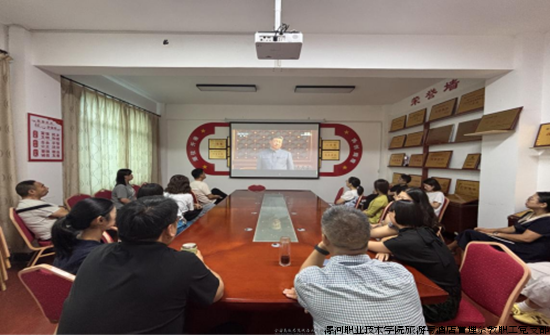 9月3日上午,纪念中国人民抗日战争暨世界反法西斯战争胜利80周年阅兵活动在北京天安门广场隆重举行。文化旅游学院组织教师在学院会议室集中观看,未返校学生则通过网络平台自行观看直播,共同回顾抗战岁月,缅怀革命先烈,凝聚奋进力量。