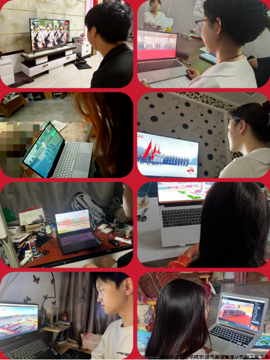 观看现场,教师们全程保持肃穆,认真观看阅兵式的每一个环节。当国歌奏响时,会议室内的教师们自发起身,齐声高唱,庄严的氛围感染着在场的每一个人。各班级群里,学生们积极分享观看截图和感受,虽然身处不同地方,却同样心潮澎湃,形成了热烈的互动氛围。