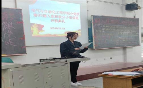 为深入学习贯彻习近平新时代中国特色社会主义思想和党的二十大精神,进一步做好党员的发展和培训工作,帮助入党积极分子系统了解和掌握党的基本理论,5月5日,电气与自动化工程学院分党校举行了第85期党校培训班开班典礼。典礼由学院党总支副书记李涛主持,党总支书记唐梅、全体辅导员、入党积极分子共225人参加了典礼。