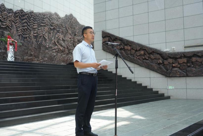 开班仪式上,赵毅与于成文共同向东北抗联英烈雕塑敬献花篮并整理花篮绶带。
