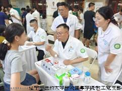 2024年8月8日-8月10日,为全面弘扬中华传统中医药文化, “岐黄惠沈城•健康夜市行”首届中医药文化夜市在辽宁中医药大学附属医院、奥体中心南广场成功举办。辽宁中医药大学针灸推拿学院教工党支部的专业团队联合青鸿针研社的志愿者在首届中医药文化夜市中,以其深厚的专业素养和特有的新型中医外治技术,为广大市民带来了一场别开生面的中医体验。