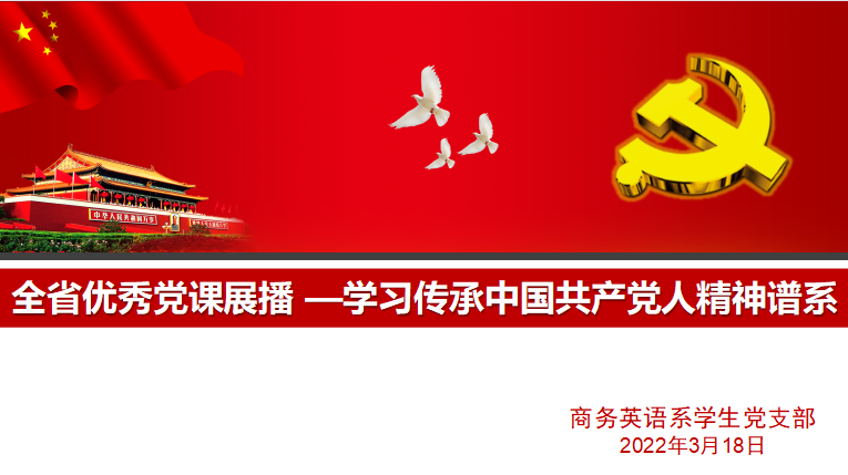 为弘扬光荣革命精神、赓续红色革命血脉,商务英语系学生党支部组织学习《全省优秀党课展播——学习传承中国共产党人精神谱系》。