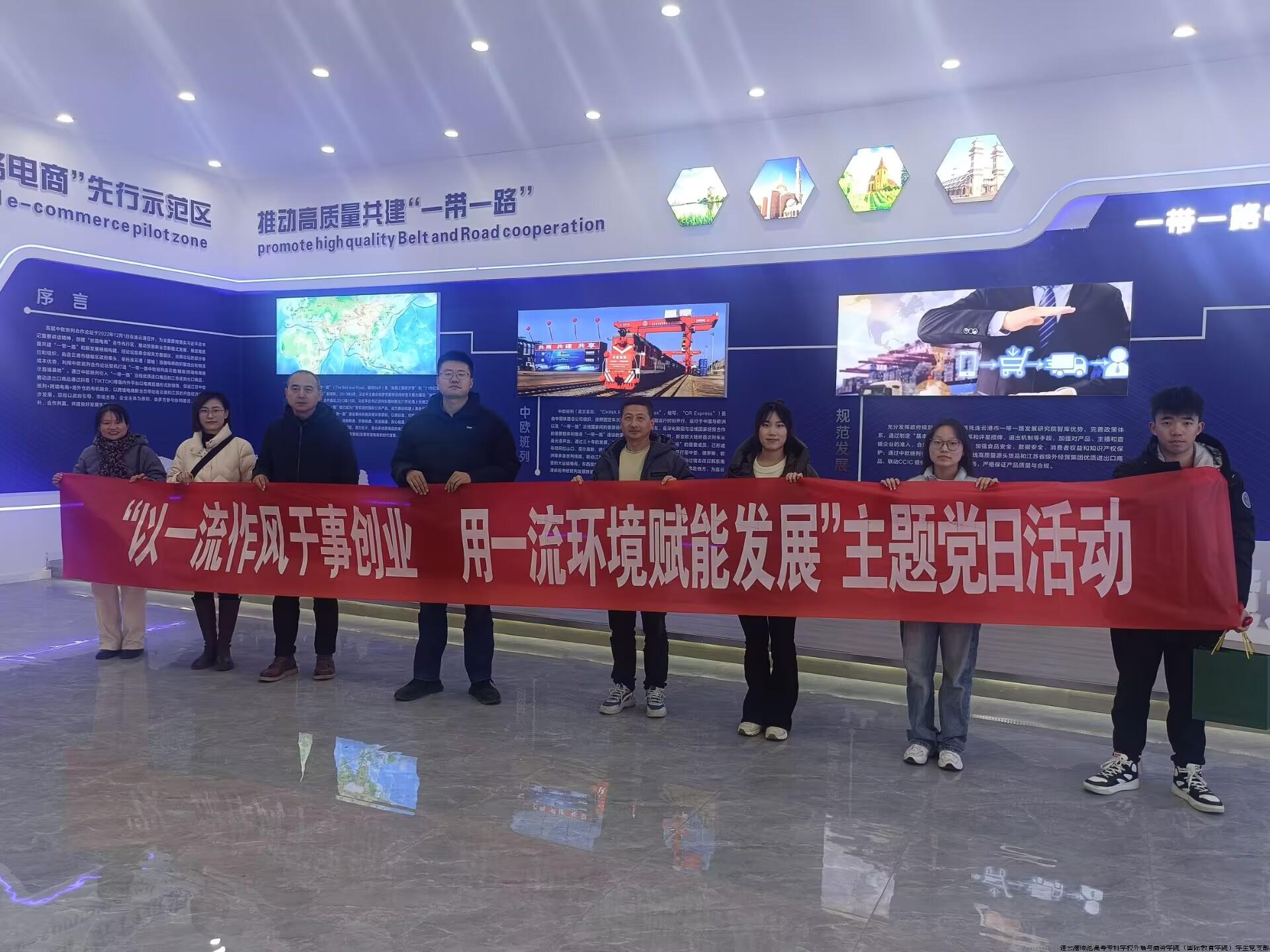 为贯彻落实全市优化营商环境暨作风建设推进会会议精神,进一步巩固和拓展主题教育成果,3月10日下午,院党团工作站组织学生党支部、教工一支部赴赣榆区开展“以一流作风干事创业 用一流环境赋能发展”主题党日活动,师生一行先后来到九里海产品电商创业园、中欧班列连云港(赣榆)跨境电商直播基地、韩口港码头直播基地,考察海鲜电商直播产业发展,共同探讨校企合作育人模式。
