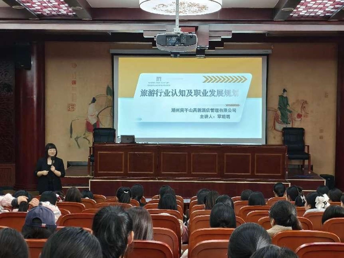 章璐璐以“旅游行业认知及职业发展规划”为主题,围绕当前旅游住宿业特色住宿业态、疫情旅游行业发展形势、旅游消费趋势等,为同学们讲解了旅游行业发展现状,分析了旅游行业出现“人才”匮乏问题的原因、毕业生面临的机遇,从角色转换、明确目标、调整心态、储备知识、锻炼技能等方面为即将踏入社会的毕业班同学指出了未来发展路径。