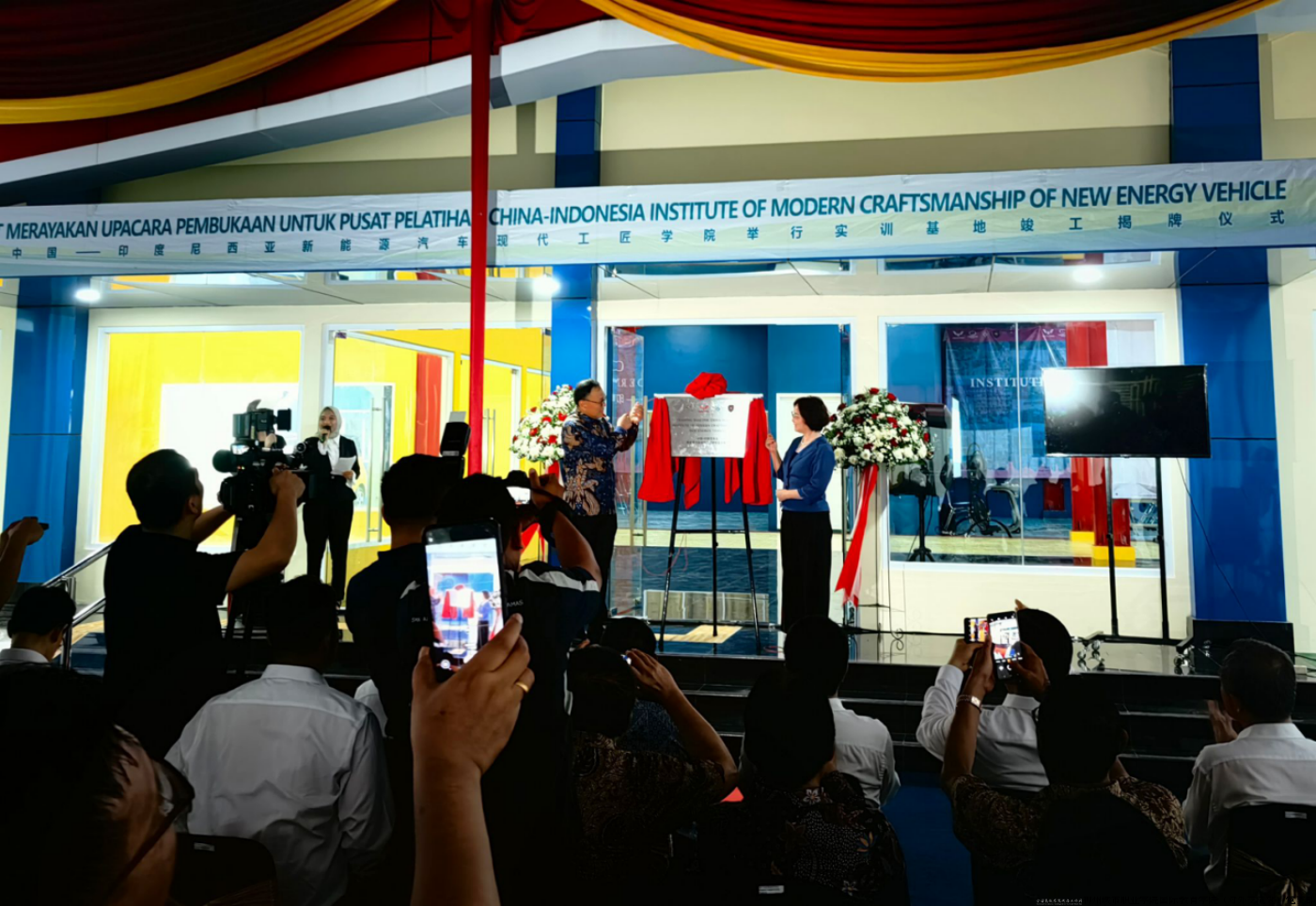 11月27日,中国-印度尼西亚新能源汽车现代工匠学院实训基地竣工揭牌仪式在印尼阿南达工业职业技术学校顺利举行,我校校长苏敏和阿南达工业职业技术学校董事会主席罗尼分别发表致词并为基地揭牌。