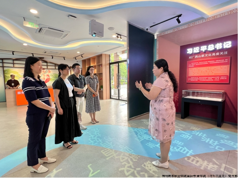 首先,在柳州市鱼峰公园管理处党支部宣传委员龙筠的引导下,国际教育学院(对外交流处)党支部的支委们参观了鱼峰山公园,深入了解公园的自然美景和丰富的文化底蕴。龙筠详细介绍了歌仙刘三姐文化展示中心,该中心主要展览歌仙刘三姐和柳州山歌文化。通过三个部分的展示,大家了解了柳州在刘三姐文化保护与传承方面的特殊贡献,以及歌仙刘三姐与柳州鱼峰歌圩的紧密联系。