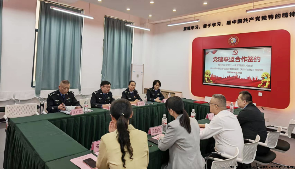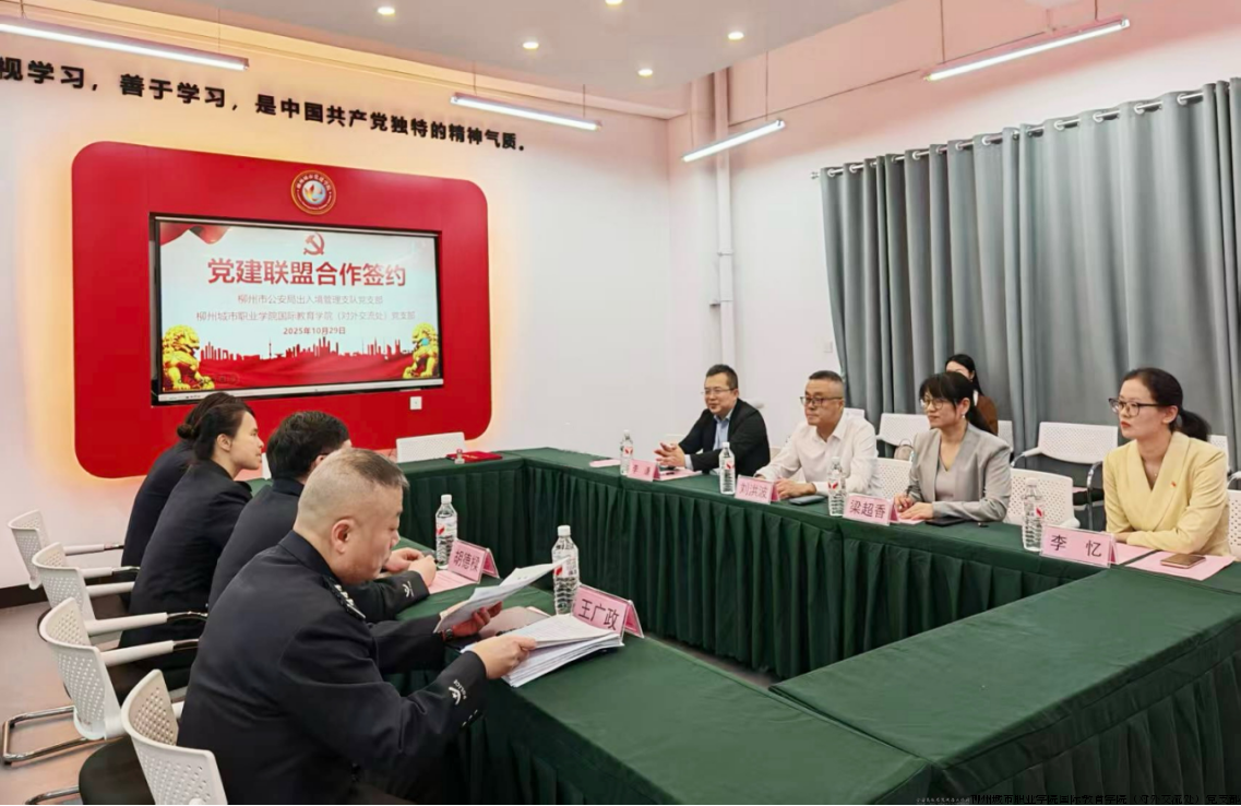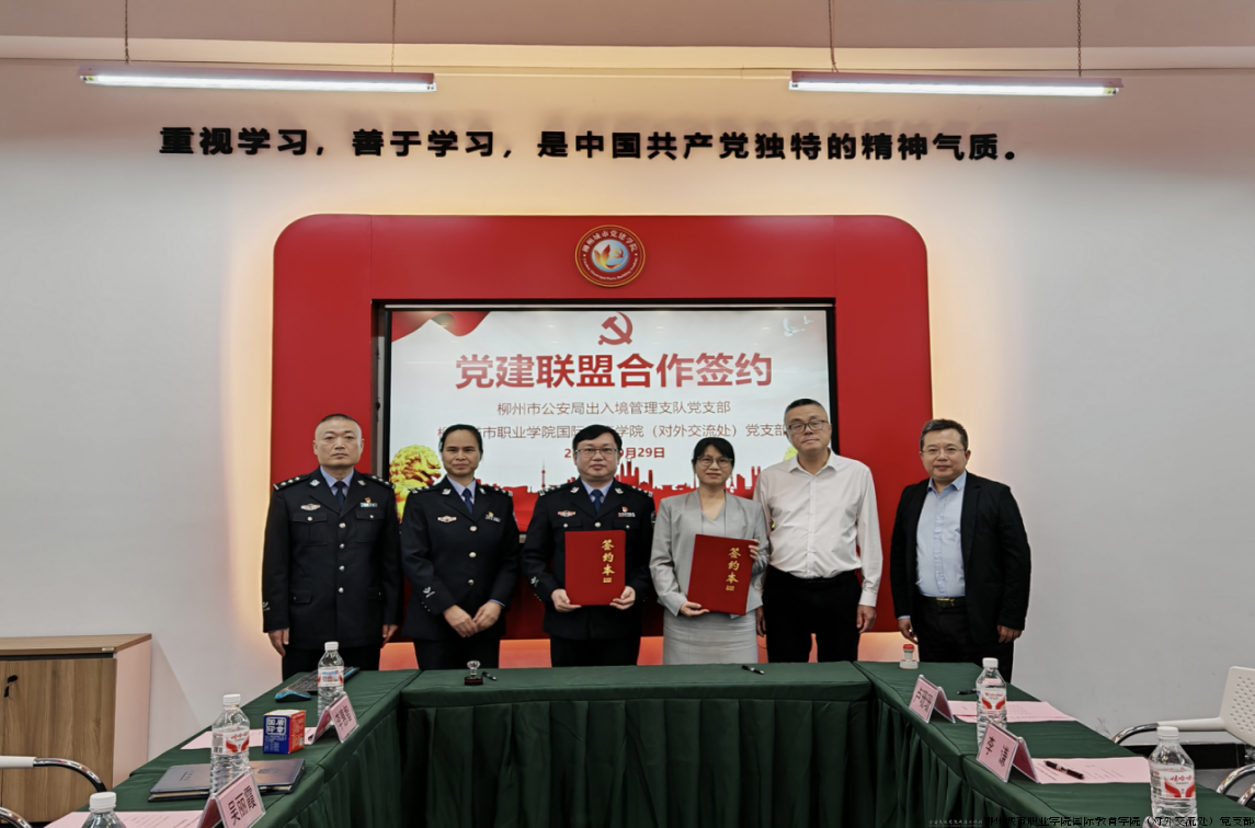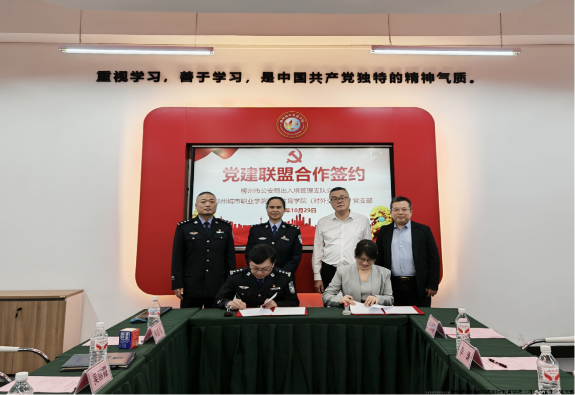柳州城市职业学院国际教育学院党支部与柳州市公安局出入境管理支队党支部举行党建联盟签约仪式