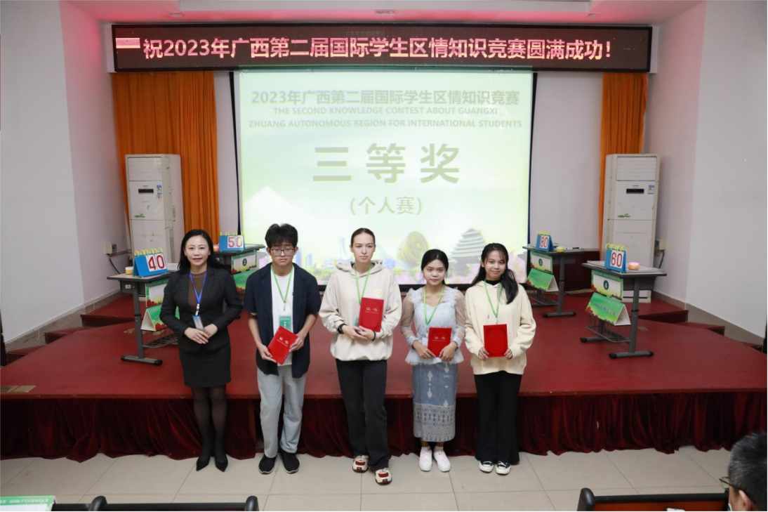 2023年12月13日至15日,广西第二届国际学生区情知识竞赛在柳州城市职业学院成功举行。此次竞赛由广西高等教育学会外国留学生教育管理专业委员会主办,柳州城市职业学院承办。竞赛旨在丰富国际学生的校园生活,让他们更加了解中国国情、广西区情,激发对中国文化、广西风情的热爱,增强对中国、广西的认同感,培养更多知华友华爱华的国际学生。