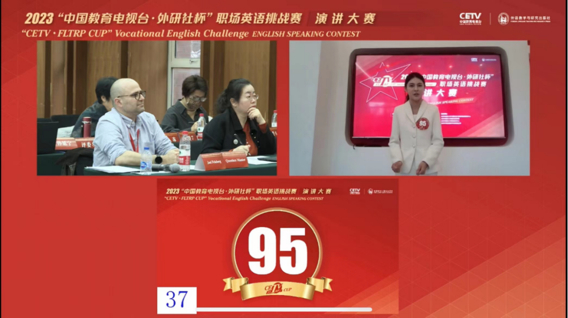 “中国教育电视台·外研社杯”职场英语挑战赛影响广泛,反映了职业教育人才培养的时代标准,为推动职业教育改革发挥了积极作用。我院参赛学生在比赛中充分展示了自己的实力和勇气,不断追求超越自我的目标。大赛不仅是对学生能力的考查,更是激励我校深化英语教学改革和人才培养模式的重要举措。基于大赛成果,高职外语教研室将会总结所获,反思不足,提升职业教育英语教学的成效和实用性,期待我校有更多的学子能登上广阔的竞技舞台展示青春风采和职业技能,赋能学生未来发展,为我校”双高“建设添砖加瓦!