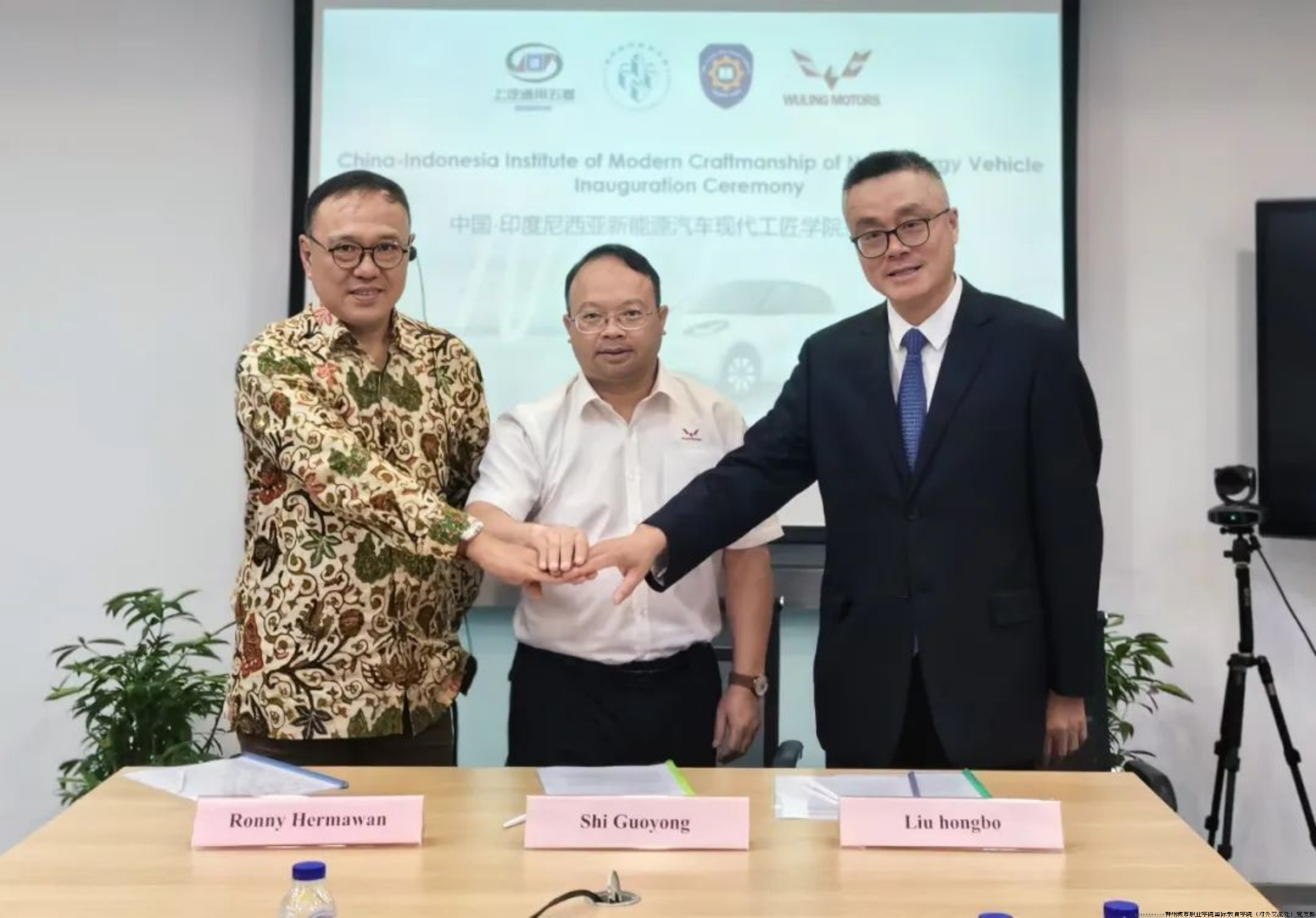 上汽通用五菱印尼汽车有限公司副总经理Arif Pramadana、绿壤工业园区运营总监Tommy Satriotomo等领导出席了挂牌仪式。