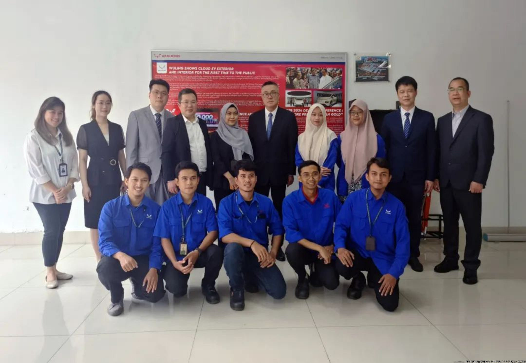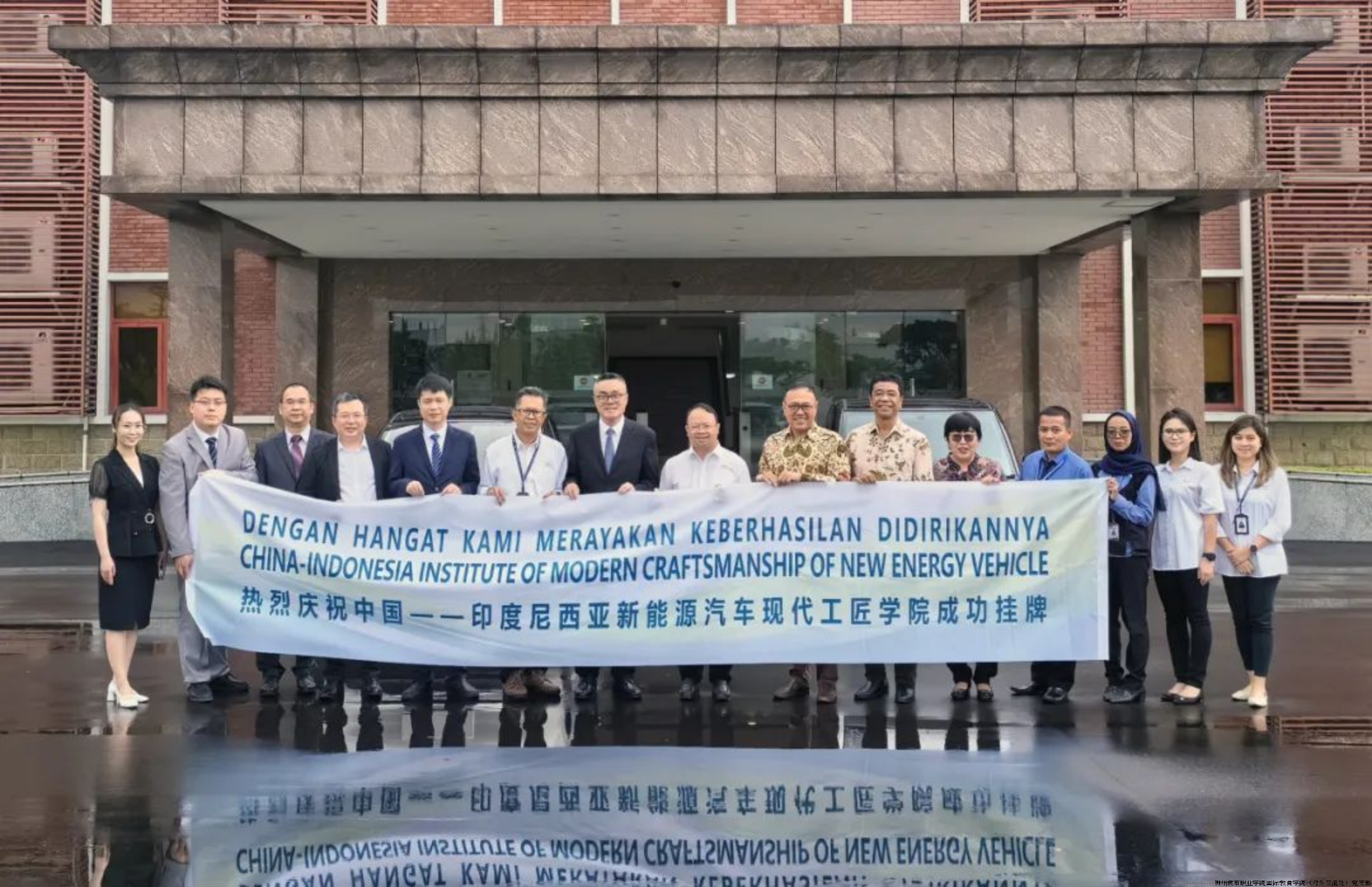 “春潮扬帆再出海,产教同行谱新篇”。3月14日,在印尼西爪哇省绿壤工业园区的上汽通用五菱印尼汽车有限公司生产基地,柳州城市职业学院与上汽通用五菱印尼汽车有限公司、阿南达工业职业技术学校举行“中国-印度尼西亚新能源汽车现代工匠学院”(以下简称“工匠学院”)挂牌仪式,标志着由上汽通用五菱汽车股份有限公司、柳州城市职业学院、上汽通用五菱印尼汽车有限公司以及印尼多个职业院校共同建设的工匠学院在实质性合作上迈出了坚实的一步。