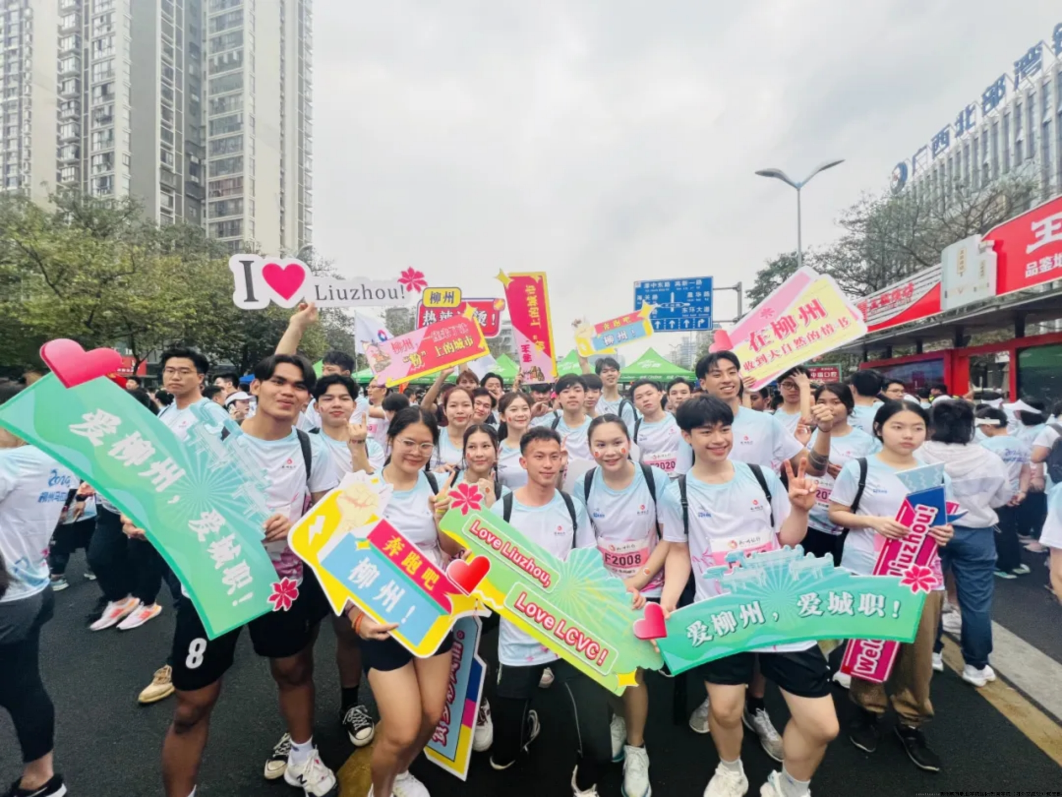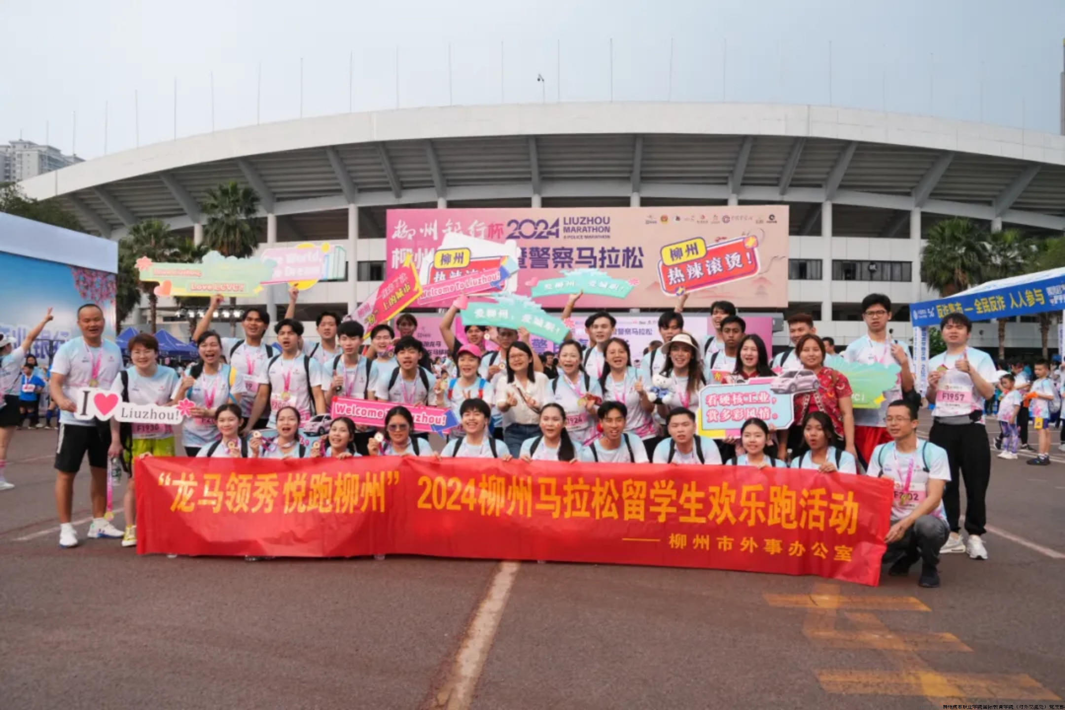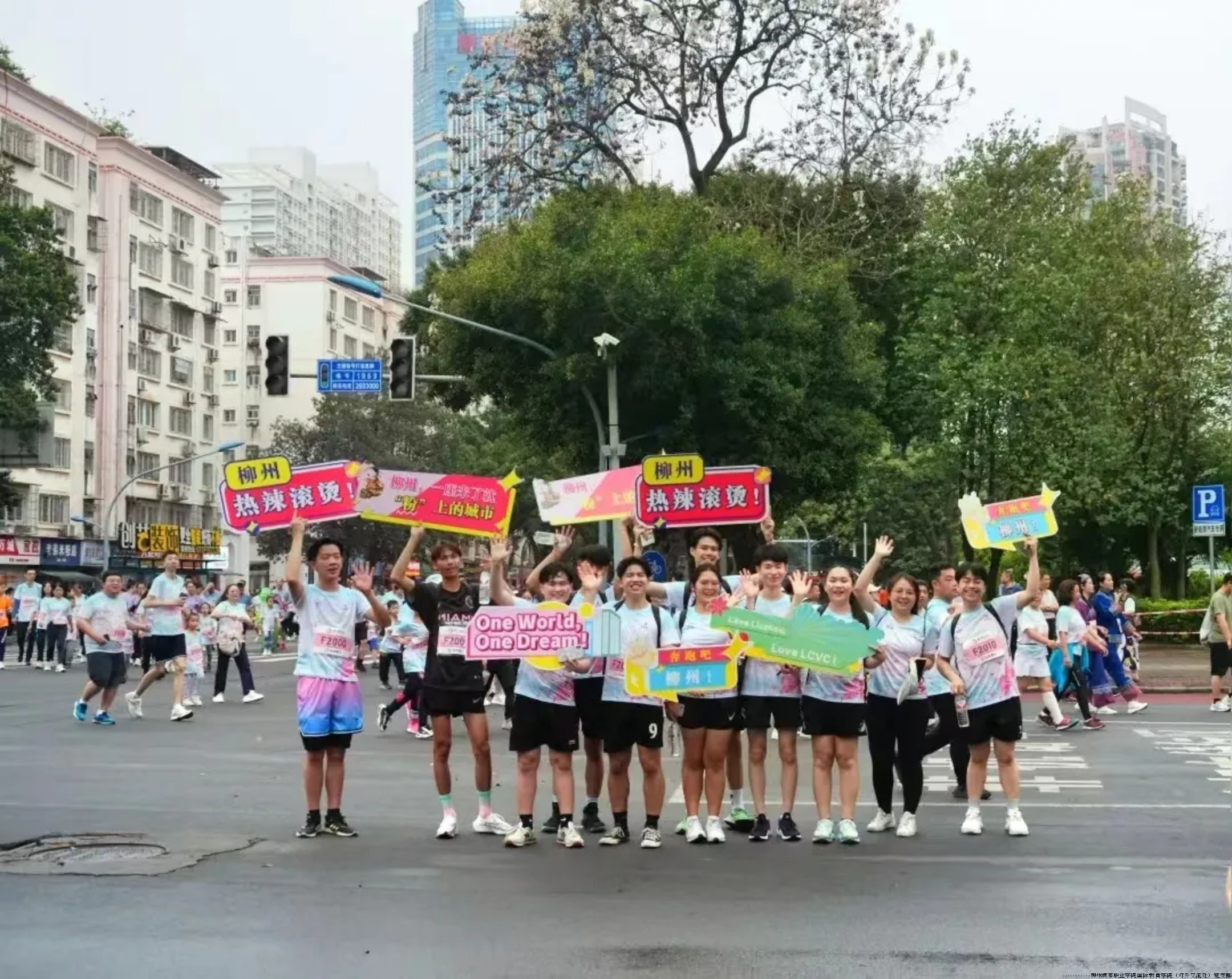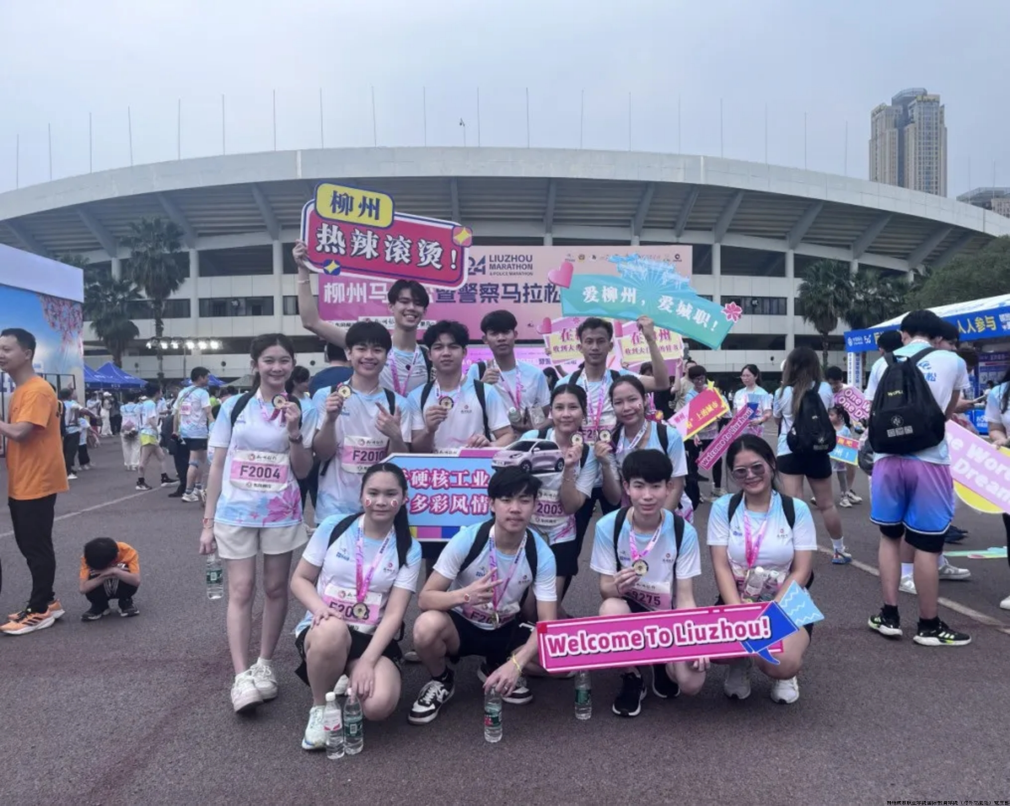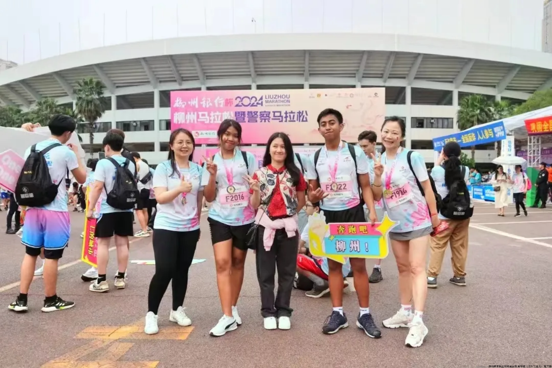 我校25名国际学生受邀参加欢乐跑项目,与来自全国各地的参赛选手共同见证这一场充满自然与人文精神的马拉松赛事,一起奋力奔跑。赛前,国际学生们早早在起点等候,做热身运动,为即将到来的挑战做好充足准备。“奔跑吧,柳州!”随着口号声地落下,起跑枪声地响起,国际学生们迅速汇入奔跑大军,用脚步丈量柳州的热土。
