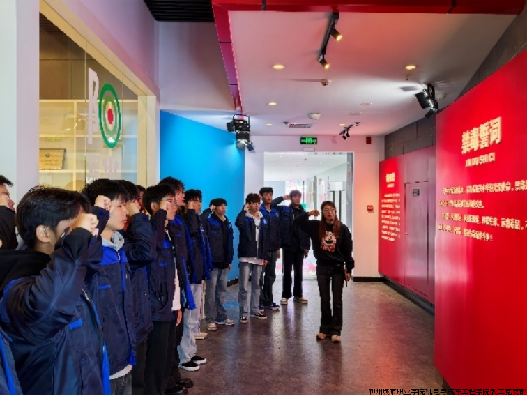 为深入贯彻习近平总书记关于禁毒工作的重要指示精神,充分发挥基层党组织在思想政治教育工作中的引领作用,常态化抓好青少年禁毒宣传教育,切实筑牢校园禁毒防线。11月4日,机电与汽车工程学院教工党支部按照学校2025年秋季学期在校学生毒品预防教育“五个一”活动安排,组织100余名学生前往柳州市禁毒教育基地,开展沉浸式毒品预防教育活动。