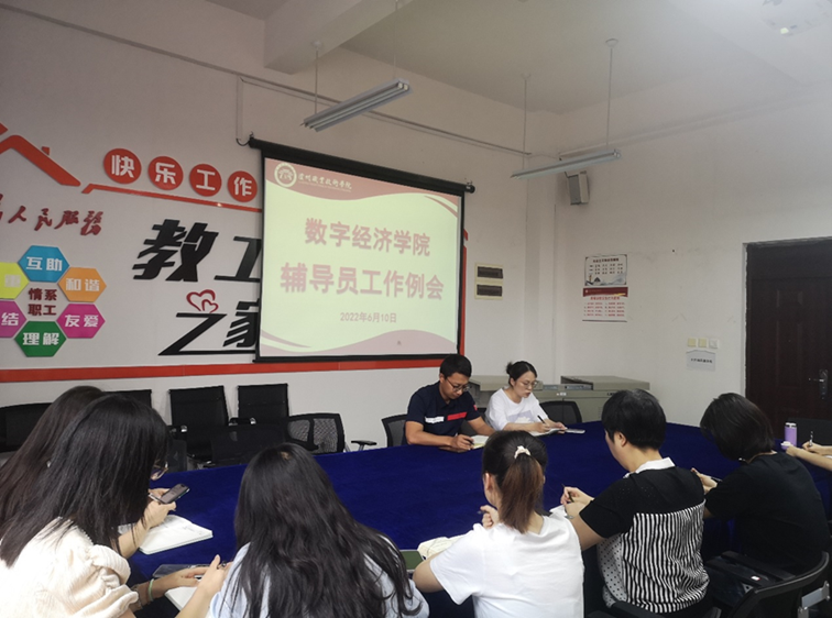 2022年6月10日上午,数字经济学院在4221办公室召开了辅导员工作例会,安排布置学生工作。党总支副书记田勇、团总支书记郑欣、学院全体辅导员参会。