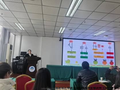 讲座中,潘宇教授对调控番茄果实发育、成熟过程的关键基因CPRF2、Sibzip38功能及其调控网络,番茄采后成熟调控技术等方面进行了系统解析,并结合团队在蔬菜遗传改良与食用菌领域的研究成果,探讨了基础研究与产业应用的深度融合方式。潘宇教授强调,番茄作为全球重要的经济作物和模式植物,其果实发育与成熟调控机制的研究对提升果实品质,延长储藏期及推动农业产业化发展具有重要意义。