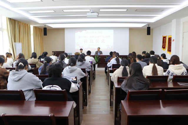 仪式在庄严的国歌声中拉开帷幕。学院党总支副书记郑宝作开班讲话,他对培训班全体学员提出了三点要求:要在“学”上下功夫,筑牢信仰之基,系统学习党的理论知识,端正入党动机;要在“做”上见行动,争当先锋模范,以党员标准严格要求自己;要在“志”上立长远,书写青春华章,将个人理想融入党和国家事业之中。培训班班主任黎亿峰介绍了本次培训的具体安排和纪律要求。24美艺1班戴淑蒙同学作为学员代表发言,承诺以“钻劲”筑牢思想根基,以“干劲”锤炼过硬本领,以“韧劲”校准前进方向,表达了以实际行动争取早日入党的坚定决心。