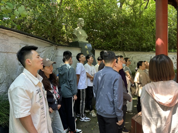 此次活动以红色景山爱国主义教育基地为起点,师生们在这里领略了“柴桥芦江红英烈文化墙”和“柴桥好人廊”的深刻内涵。这些历史浮雕和故事,犹如一幅幅生动的画卷,展现了革命烈士的英勇事迹与乡亲的善行义举,不仅是对历史的回顾,更是对廉洁自律、遵纪守法的崇高精神的传承。在万景山社区党总支书记楼妍伶的引领下,师生们登上红色景山,瞻仰了胡焦琴烈士纪念亭,并向这位英勇的女烈士默哀致敬。他们沿着公园小径,参观了广场、宣誓平台、文昌阁等地,感受到了革命历史的厚重与廉洁家风、遵纪守法的深远意义。