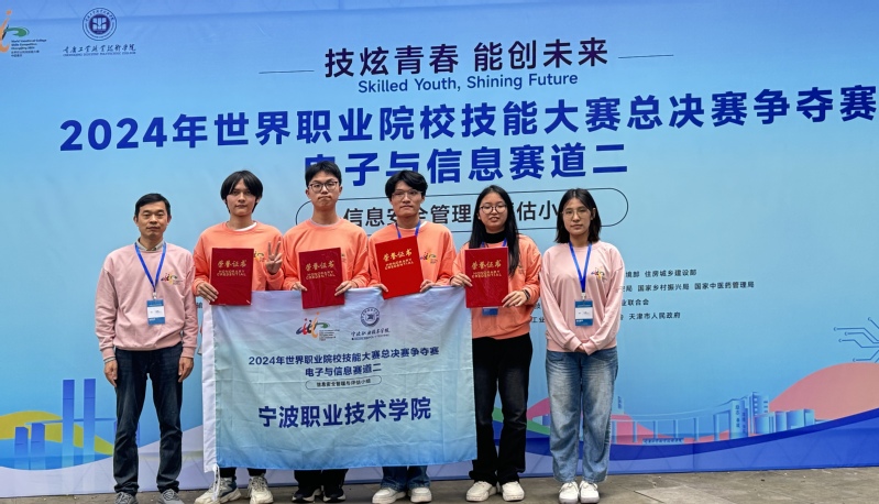 2024年10月22日-26日,世界职业院校技能大赛总决赛争夺赛电子与信息赛道二(信息安全管理与评估小组)赛事在重庆工业职业技术学院成功举办。来自全国各地职业院校的61支队伍,共234名参赛选手同台竞技,经过两天激烈角逐,共决出金奖6项,银奖12项,铜奖18项。人工智能学院教师第一党支部李宏铭、杜娟等老师指导的盛榆闰、余乾、冯翔、鲍佳晴团队获团体银奖。