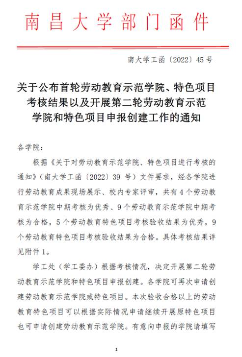 近日,南昌大学学工处公布了劳动教育示范学院项目终期考核结果,支部党员参与申报的“精耕细作-五育并举劳动教育示范工程”项目获评优秀。