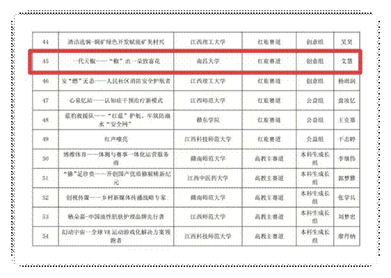 7月29日-31日,第九届江西省“互联网+”大学生创新创业大赛决赛在赣州市赣南师范大学举办,支部邹志文、夏斌同志指导的、由研究生艾慧领队的项目“一代天椒——‘椒’出一朵致富花”荣获江西省青年红色筑梦之旅·创意组金奖!