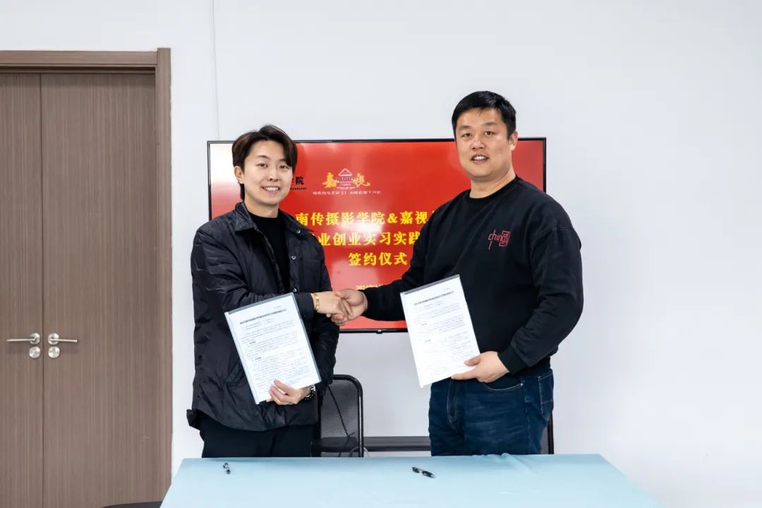 双方洽谈完毕开始正式签约。南京传媒学院摄影学院与嘉视传媒有限公司的校企合作活动取得了圆满成功,双方合作共同努力培养高素质摄影人才,为未来影视产业注入新的活力。