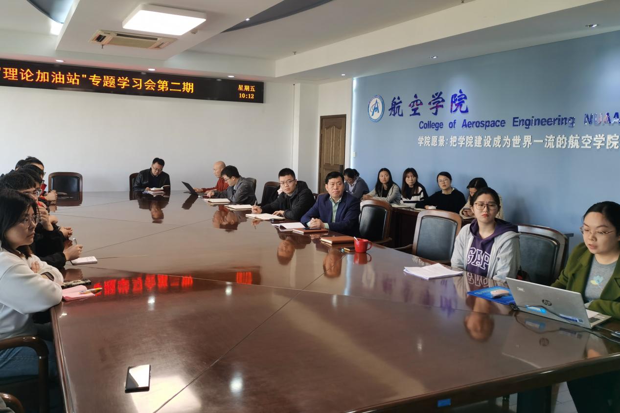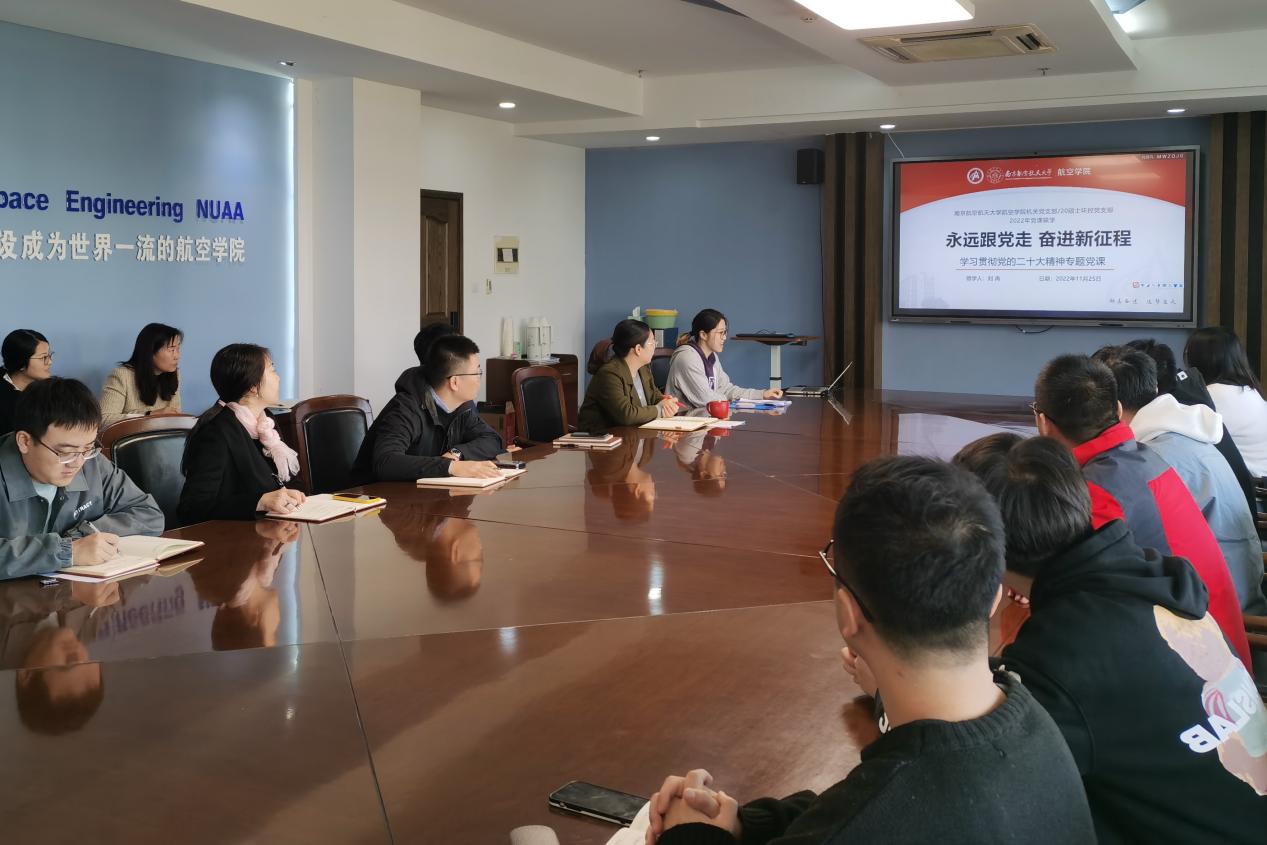 为进一步落实党建“三个一”联系制度,密切联系学生,发挥管理服务育人作用,11月24日,航空学院机关党支部举办第二期“理论加油站”专题学习会,与20硕士环控学生党支部联合学习党的二十大精神。航空学院党委书记袁智强、副院长钱晓辉及两支部20余名党员参与此次学习。活动由机关党支部书记韩楚主持。