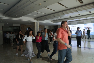 活动前夕,学院精心筹备,会同有关部门多次进行现场勘察、设备调试及演练方案讨论,并成立了由22名师生组成的疏散引导员队伍。演练当天,演练活动现场指挥中心充分利用信息化手段,将各楼层的监视信号实时接入一楼宣传大屏,确保指挥中心能够第一时间掌握火情、疏散及救援信息,为科学决策和精准指挥提供了有力保障。下午15:45分,明故宫校区A18号楼宇主楼三楼东北侧区域模拟火情发生,应急演练开始。楼宇内400余名师生在疏散引导员的指挥下,严格按照预定的疏散预案,迅速撤离到安全区域。整个演练过程紧张有序,充分展示了师生们的高效应对能力和组织纪律性。