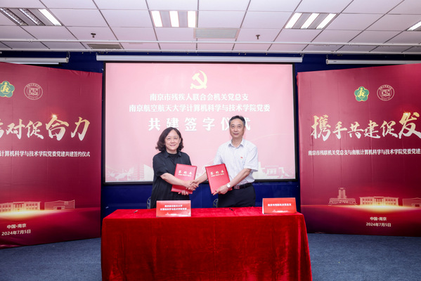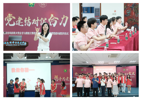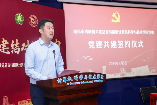 为深入学习贯彻习近平新时代中国特色社会主义思想和党的二十大精神,促进校地双方融合共建,推动校地双向赋能发展,发挥党组织的战斗堡垒作用,将“三全育人”和“志愿助残”有机结合,打造开放融合、优势互补、资源共享、共同提高的党建工作共同体,7月5日下午,计算机学院党委与南京市残联机关党总支于学院515会议室举行党建共建合作签约仪式。