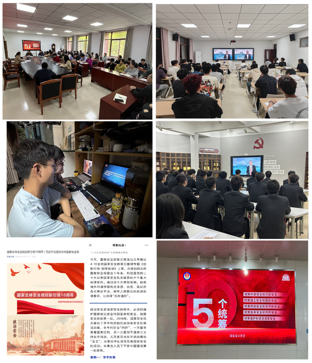 组织专题学习。学院二级中心组和学院教职工专题学习了习近平总书记关于总体国家安全观的重要论述以及党的二十大报告中关于总体国家安全观等内容。各班级围绕国家安全教育日开展主题班会,学习《中华人民共和国国家安全法》《反间谍法》和《网络安全法》等相关法律法规。通过视频观看、发言交流等形式,进一步增强师生的总体国家安全观。