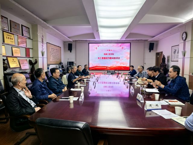 10月10日,学院在第一会议室召开关工委重阳节慰问座谈交流会,校关工委常务副主任项银康,校关工委副主任王大勇、李春宏,国家级教学名师袁军堂,校关工委委员、机械工程学院关工委金牌讲师朱继南,机械工程学院关工委常务副主任江鸿、张荣生,机械工程学院教授谈乐斌、李志刚,机械工程学院党委书记、关工委主任吴志林,机械工程学院兼职组织员胡绪宝,学院副处级辅导员周德宏,学院团委书记周雪,学院学工办主任叶柳,学院本科辅导员周鹏参加了会议。会议由党委副书记、纪委书记、关工委副主任陈荣明主持。