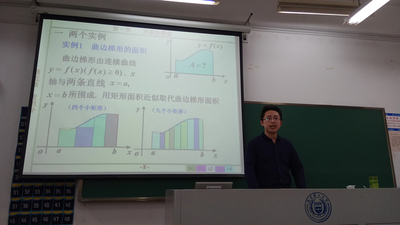 田龙老师曾在2018年度理学院教师讲课竞赛中荣获一等奖,本周即将参加校讲课比赛也是信心满满。他准备的试讲单元是《定积分的概念》,田老师这堂课的设计思路是:概念的引入、定义的讲解、例题的分析及知识的总结与回顾。从试讲情况来看,内容准备的比较充分,PPT的播放和板书结合得也比较好。