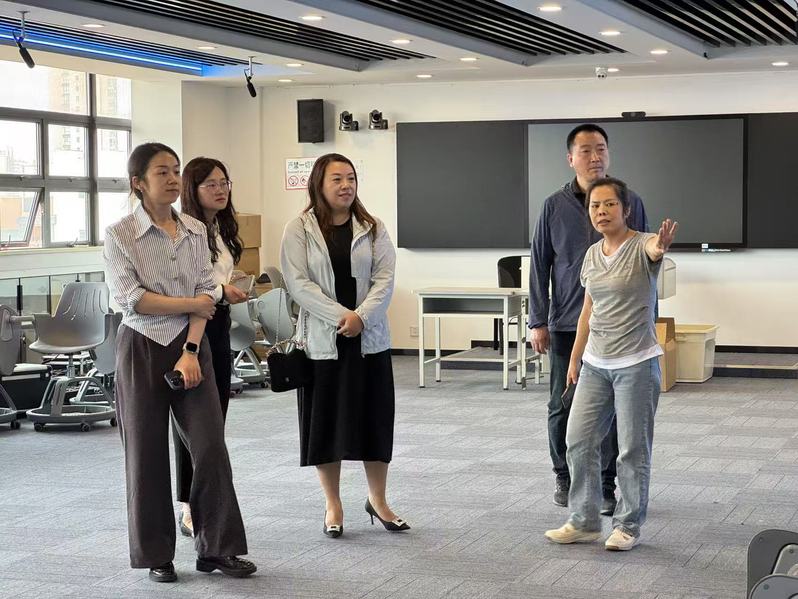 座谈会前,燕子矶社区党委书记杨宝仁、副主任沈媛媛一行实地参观了学院的各类专业实验室、科创实验室和党员实景课堂。