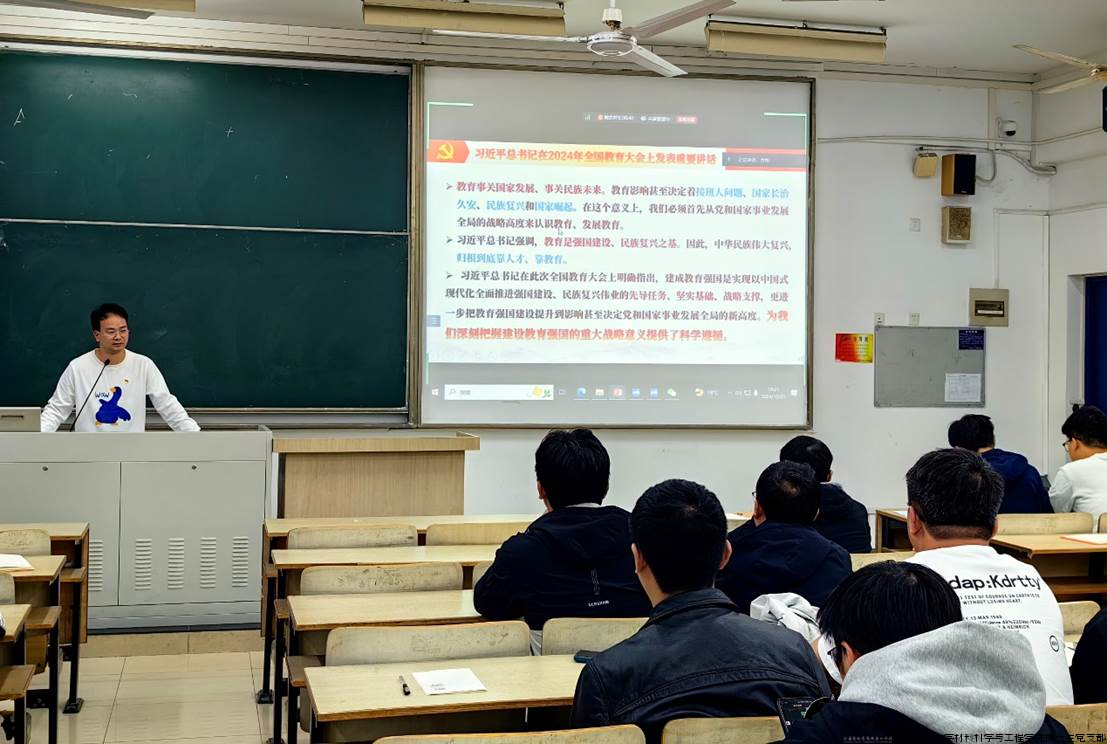 会上,方栋同志介绍了2024年全国教育大会的基本概况,并对习近平总书记重要讲话进行了层次分明、要点明确的解读。方栋同志首先阐述建成教育强国的重要意义以及新时代教育事业取得的显著成就,随后通过“建成怎样的教育强国”和“建成教育强国需遵循的基本路径”两个问题,深入解读习近平总书记提出的教育强国需具有的“思政引领力、人才竞争力、科技支撑力、民生保障力、社会协同力、国际影响力”六大核心要素,以及建成教育强国必需紧紧围绕立德树人的这一根本任务。最后,方栋同志详细介绍教育强国建设要正确处理好的五个重大关系,并着重阐释习近平总书记提出的“要统筹实施科教兴国战略、人才强国战略、创新驱动发展战略,一体推进教育发展、科技创新、人才培养”这一关系。