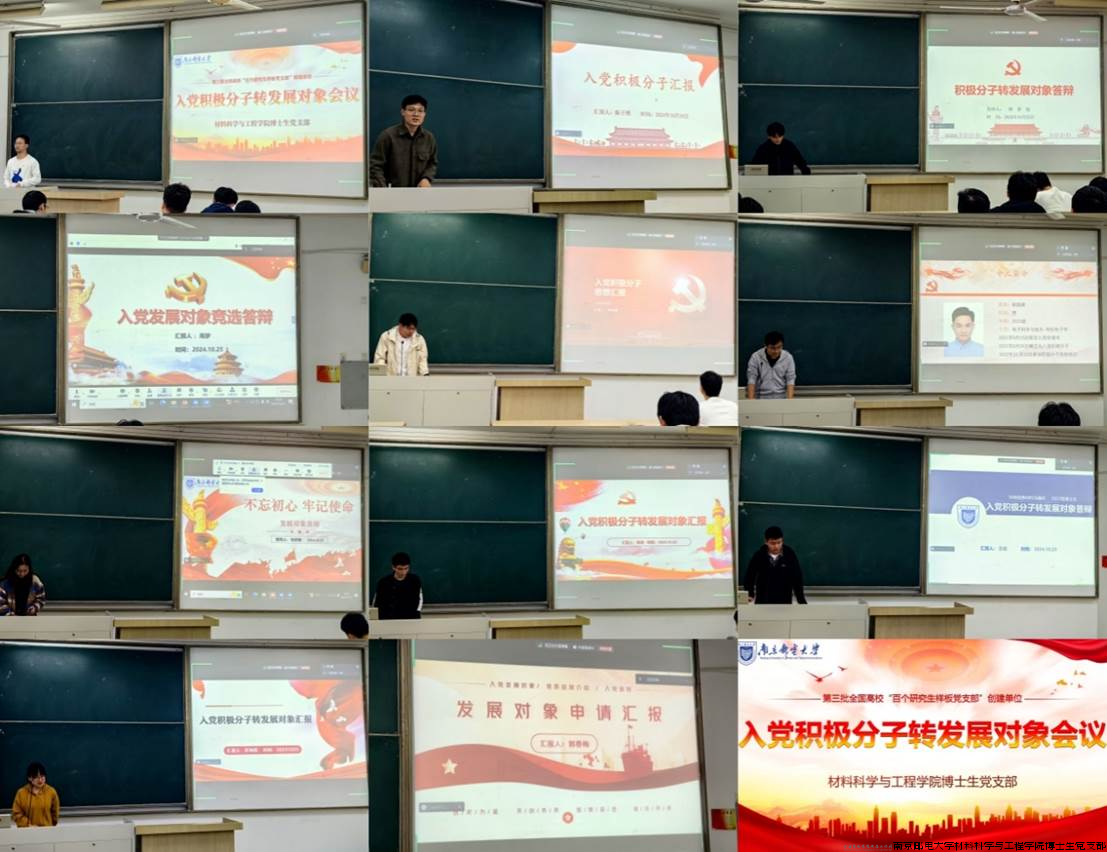 为深入学习贯彻习近平总书记重要讲话精神及全国教育大会精神,10月25日,材料科学与工程学院博士生党支部通过线上线下相结合的方式召开支部大会。会议由支部书记方栋主持,支部全体成员及入党积极分子参会。