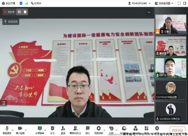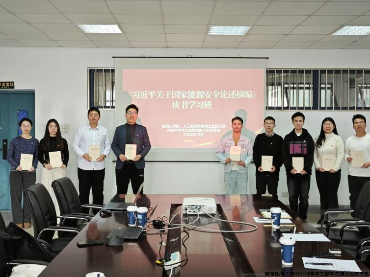 中共中央党史和文献研究院编辑的《习近平关于国家能源安全论述摘编》一书,于2024年6月由中央文献出版社出版,在全国范围内广泛发行。12月17日,南京邮电大学自动化学院、人工智能学院博士生党支部、材料科学与工程学院博士生党支部联合举办《习近平关于国家能源安全论述摘编》读书学习会。此次活动旨在通过理论学习,进一步加深博士生党员对国家能源安全议题的认识与理解,同时以党建为引领,促进学科间的交叉融合,激发科技创新的新活力。读书会由第三批全国高校“百名研究生党员标兵”、自动化学院、人工智能学院博士生党支部书记徐雷,第三批全国高校“百个研究生样板党支部”、材料科学与工程学院博士生党支部书记方栋主持。南瑞集团电网安全稳定控制技术分公司第四党支部书记、系统保护实验室副主任兼实验验证室主任董希建,江苏省能源研究会青年科学技术奖获得者、南京邮电大学碳中和先进技术研究院研究生导师张博,第三批全国高校“百名研究生党员标兵”、鲁东大学研究生油伦贺,自动化学院、人工智能学院博士生党支部、材料科学与工程学院博士生党支部全体支委出席会议。