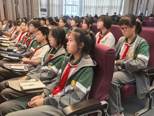 学生代表初二9班季靖宁同学发言,季靖宁同学代表全体九初学子,对南京中医药大学中医学院表示了由衷的感谢,也表达了努力学习,传承传统文化的决心。
