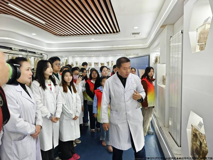 首先,人体解剖学实验室主任、第二党支部书记贾建新教授介绍了包头医学院人体解剖学科以及人体标本陈列馆的基本概况。包头医学院人体解剖学标本陈列馆位于包头市东河区建设路31号包头医学院校本部人体解剖实验楼一楼,该馆立足于包头医学院,辐射包头市,集教学、科研、科普等各项功能于一体。常年面向社会开放,展馆集虚拟化演示、标本专业化展陈、医学知识科普展示为一体,通过开展教学演示、科普教育、临床疾病相关解剖结构的讲解等活动,向社会展示生命科学的无穷魅力。