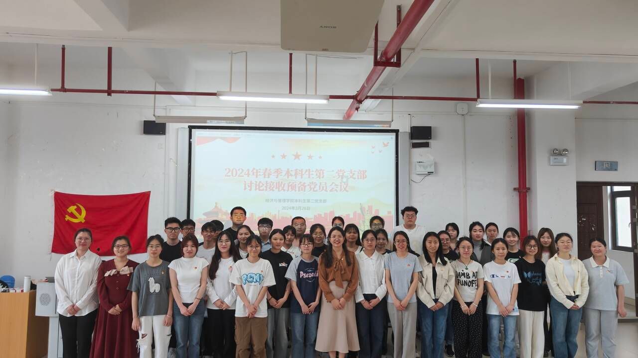 为壮大支部党员队伍,增强支部力量,为党组织汇入新鲜血液,3月26日下午,经济与管理学院本科生第二党支部在文理综合楼文楼召开2024年春季讨论接收预备党员会议。本次会议由保密委员陆柳政同志主持,本科生第二党支部支部书记刘家瑶和党员共33人参加会议。