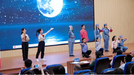 当红领巾站上大学讲台讲述英烈故事时,台下的大学生们既惊讶又赞叹,热烈的掌声不绝于耳。这堂思政情景课特别邀请五象新区第二实验小学的同学们情景演绎了“穿越时空的对话”,打破围墙、贯通学段,推动大中小学思政课有效衔接。从大学讲堂到小学课堂,英雄精神传承的火种跨越学段壁垒,传承红色基因的火种在大中小学生青春的心田燎原,真正实现了红色基因在广大青少年血脉中的赓续弘扬。