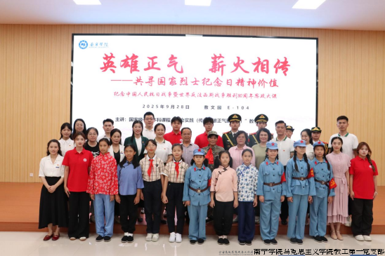 地理国防有界,精神国防无疆。此次课程,是马克思主义学院党总支纪念中国人民抗日战争暨世界反法西斯战争胜利80周年系列活动的重要组织部分,是扎实落实全区大中小学思想政治教育一体化共同体暨铸牢中华民族共同体意识教育联盟南宁市试验片区建设的一次有益探索。未来,马克思主义学院党总支将持续打造更多让学生“听得懂、信得过、用得上、做得实”的思政金课,为新时代高校立德树人工作写下更生动的“南院答卷”。