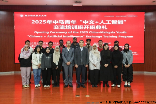 在3月中旬,我院与马来西亚博特拉大学举办“中文+人工智能”国际研学活动中,由李光荣、黄全宾、韦琼略、龙妍、禤浚波、郝思喆、卢广兴等党员教师组成了工作小组,向马来西亚研学班学生系统展示了人工智能领域的前沿技术与应用场景,带领国际学生共同探索人工智能的奥秘。并带领研学班实地考察了华为技术有限公司等行业领军科技企业,充分体验人工智能技术如何赋能千行百业。