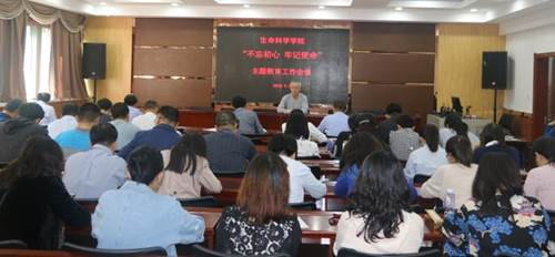 沈岩东同志作《生命科学学院“不忘初心、牢记使命”主题教育实施方案》动员报告,对我院主题教育工作进行动员部署,他指出:要把开展“不忘初心、牢记使命”主题教育作为学院当前一项重大政治任务,按照“守初心、担使命,找差距、抓落实”的总要求,切实增强全体党员“四个意识”、坚定“四个自信”、做到“两个维护”。本次主题教育不划阶段、不分环节,要把抓好学习教育、调查研究、检视问题、整改落实贯穿主题教育全过程,突出学院特色,确保取得实效。他强调,本次主题教育要加强组织领导,要突出抓好院领导班子成员的主题教育,并对基层党支部和党员的学习教育提出了的明确要求,号召全体党员要切实把主题教育激发出来的工作热情转化为真抓实干的实际成效。