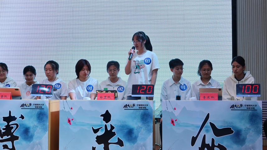 在中医基础理论知识竞赛中,共有24名学生组成的8支队伍登上决赛舞台进行激烈角逐,通过“必答题、抢答题、风险题”三个环节多方位考查同学们对中医基础理论、中药学、中医诊断学等专业基础的掌握程度及思辨能力。