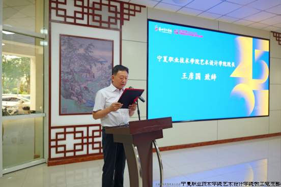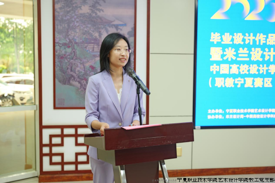 宁夏民族职业技术学院艺术设计学院副院长高志恒作为组委会副主任代表发言,他深刻阐明了赛事对促进校际协同、产教共育的重大意义。紧接着,艺术设计学院副院长王芳宣读了2025届毕业设计“优秀作品”表彰名单,吴轶勤部长为获奖学生代表颁发荣誉证书。