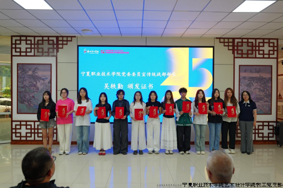 活动伊始,宁夏职业技术学院艺术设计学院院长王彦国致辞,他回顾了2025届毕业生的成长足迹,并展望了学院在深化教学改革、服务地方发展上的坚定步伐。随后,艺术设计学院副院长冯雪驱宣读了“米兰设计周”职教宁夏赛区组委会成员名单,并由苏晓军副书记为组委会成员代表颁发聘书。